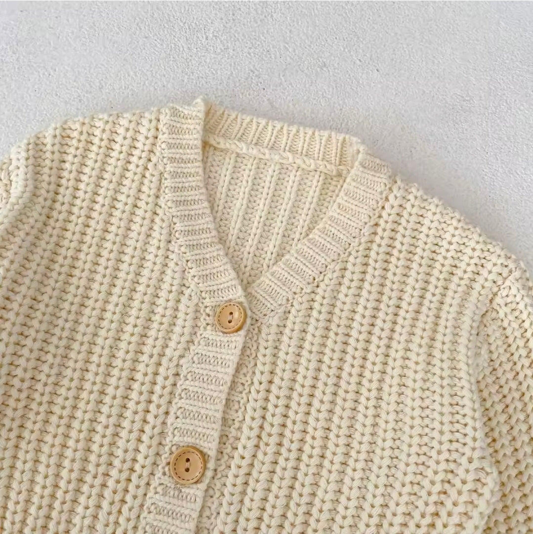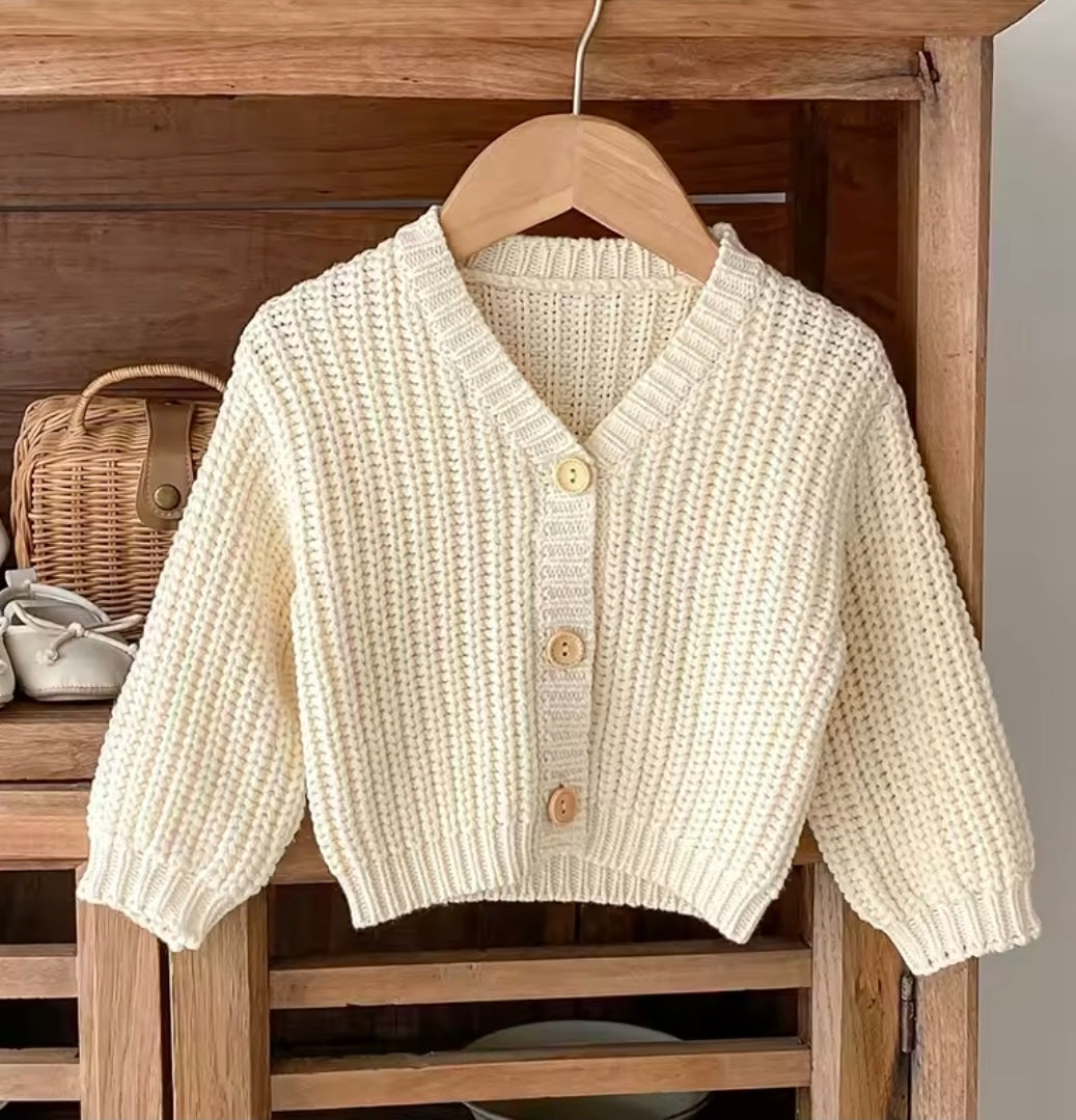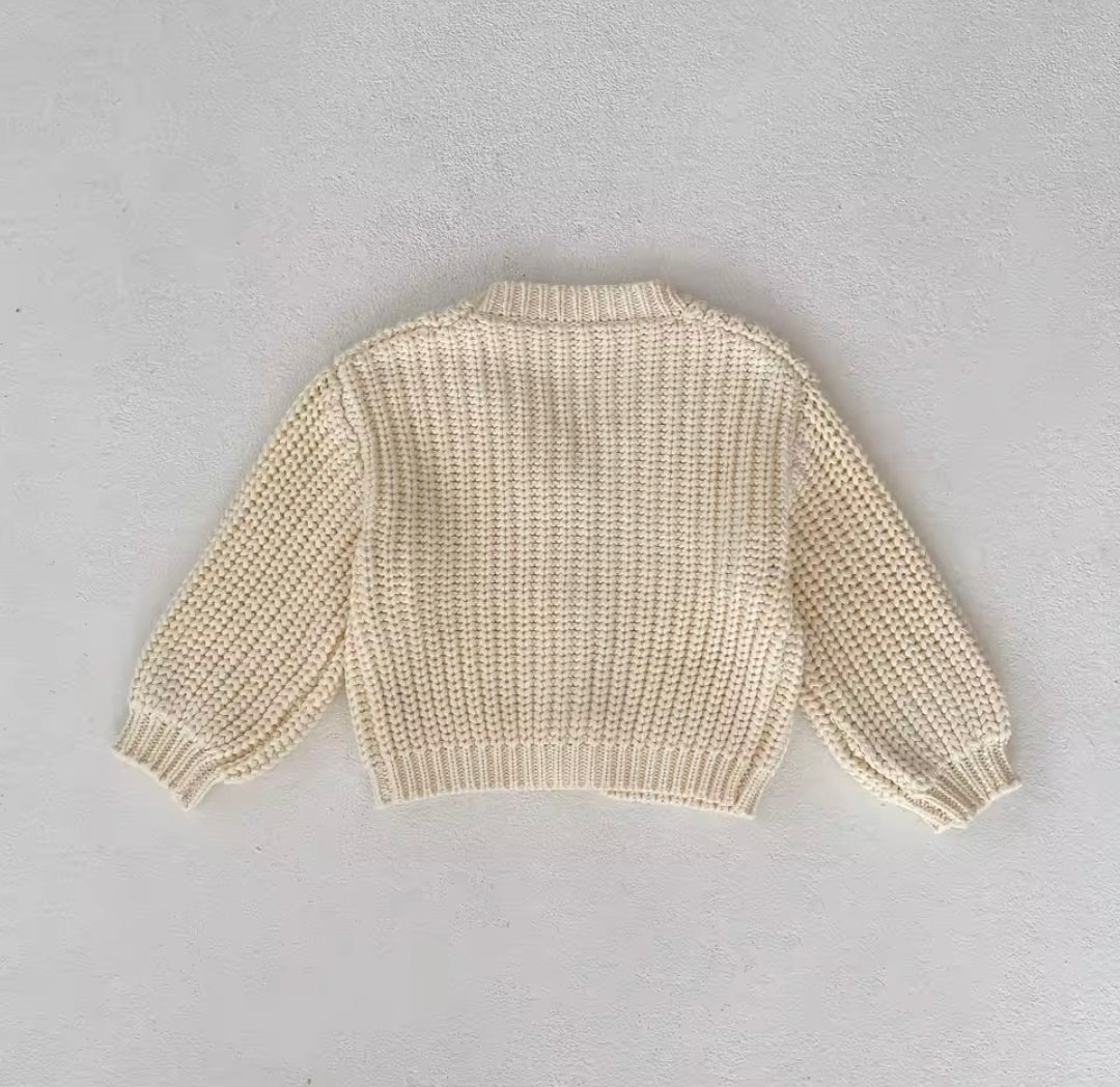 Ready for personalised name embroidery for your little one! Beautiful cream chunky knit cardigan with a v-neck style full button front closure - perfect for layering in all weather! Especially perfect for cosy autumn and winter months.