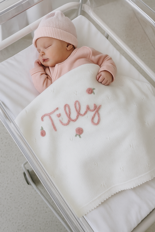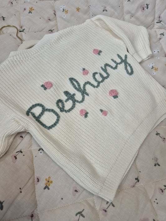 Beautiful hand-embroidered knitwear and accessories. Personalised specially for your little ones, by me!